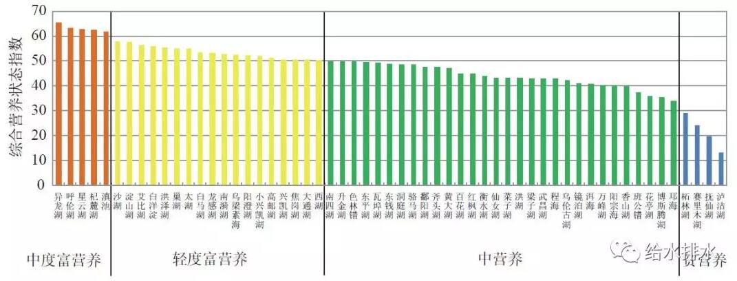 2016年中國重要湖泊營養狀態比較(中國環境狀況公報)